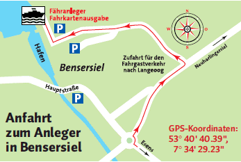 Mit den Ostfriesland Express können Sie von Bremen direkt bis nach Bensersiel zum Anleger fahren. Nähere Informationen unter www.ostfriesland-express.de oder Ticket-Hotline 04971 92580.